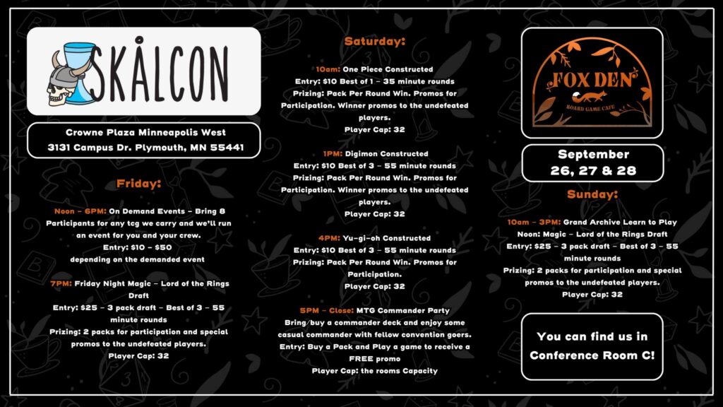 • Bring/buy a commander deck and enjoy some casual commander with fellow convention goers.